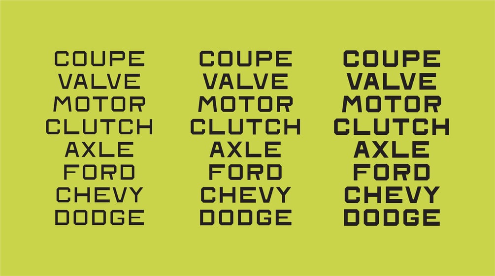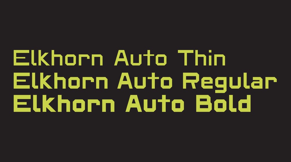 Elkhorn Auto Typeface: Vintage charm meets contemporary design excellence with three weights – Bold, Regular, and Thin.